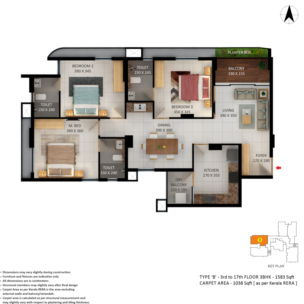 In the city of festivals, Thrissur, Asset Pavithram offers the epitome of modern living in a vibrant and dynamic setting. With 93 units of 2 and 3 BHK apartments spread across a 17-storey building, experience the perfect blend of contemporary comfort and the lively charm of this cultural hub.